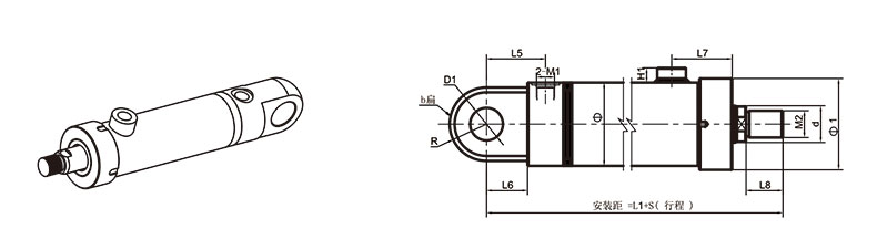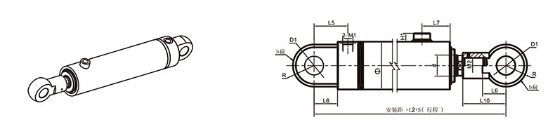 活塞桿端為內(nèi)螺紋桿頭耳環(huán)連接