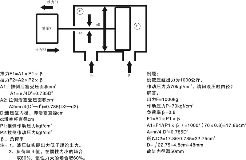 3)缸內徑和活塞桿直徑的單位為毫米mm。