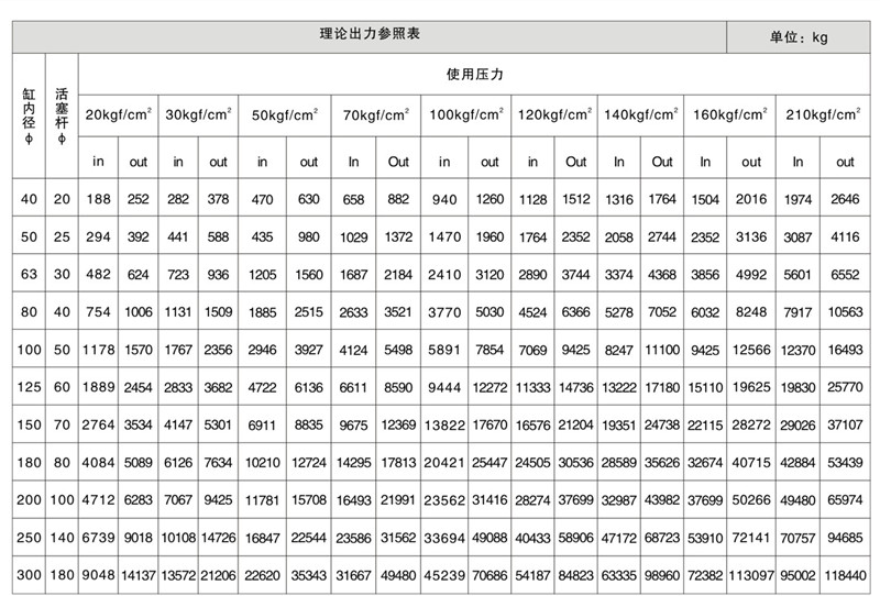 1)in表示油缸受拉力時的受力,out表示油缸受推力時的受力;